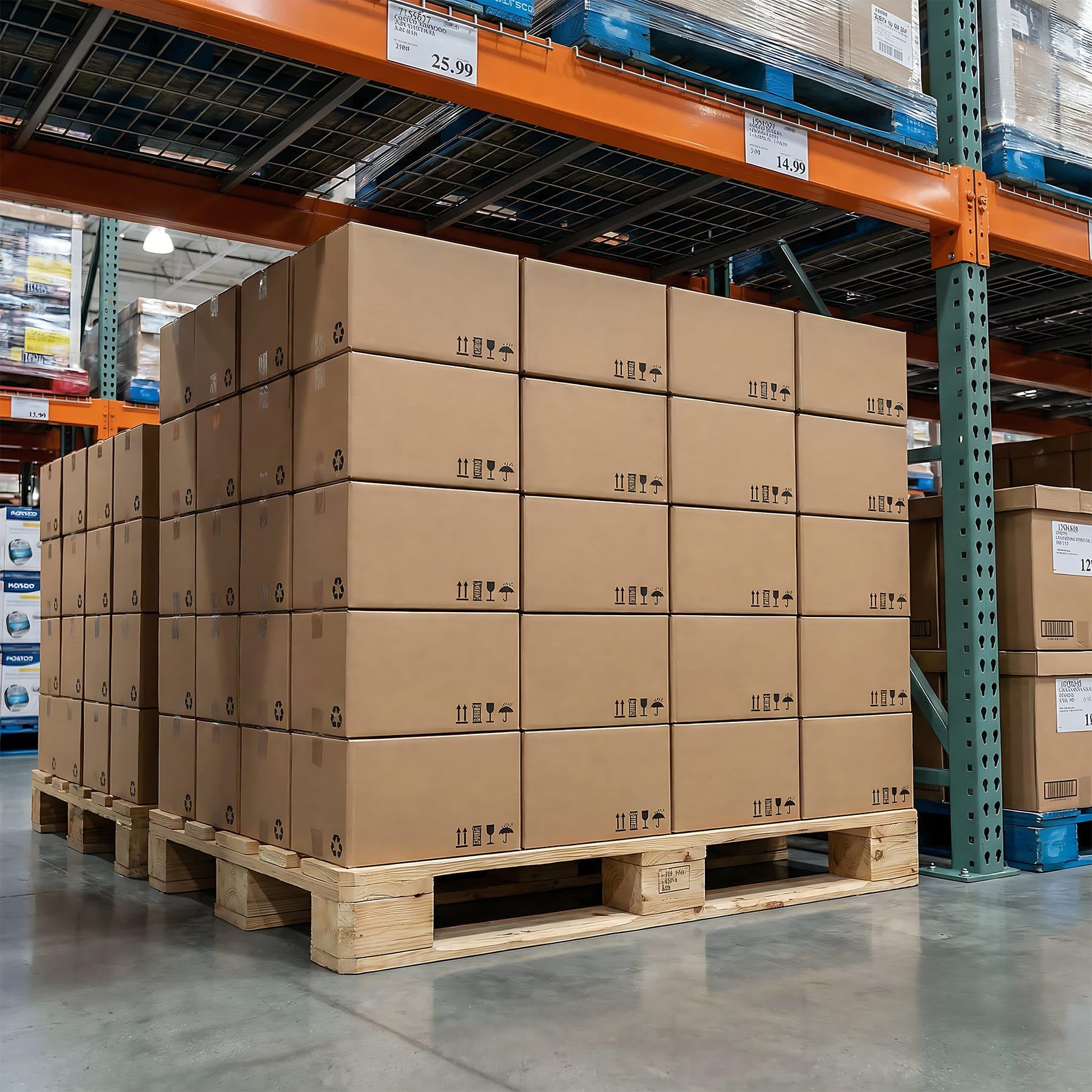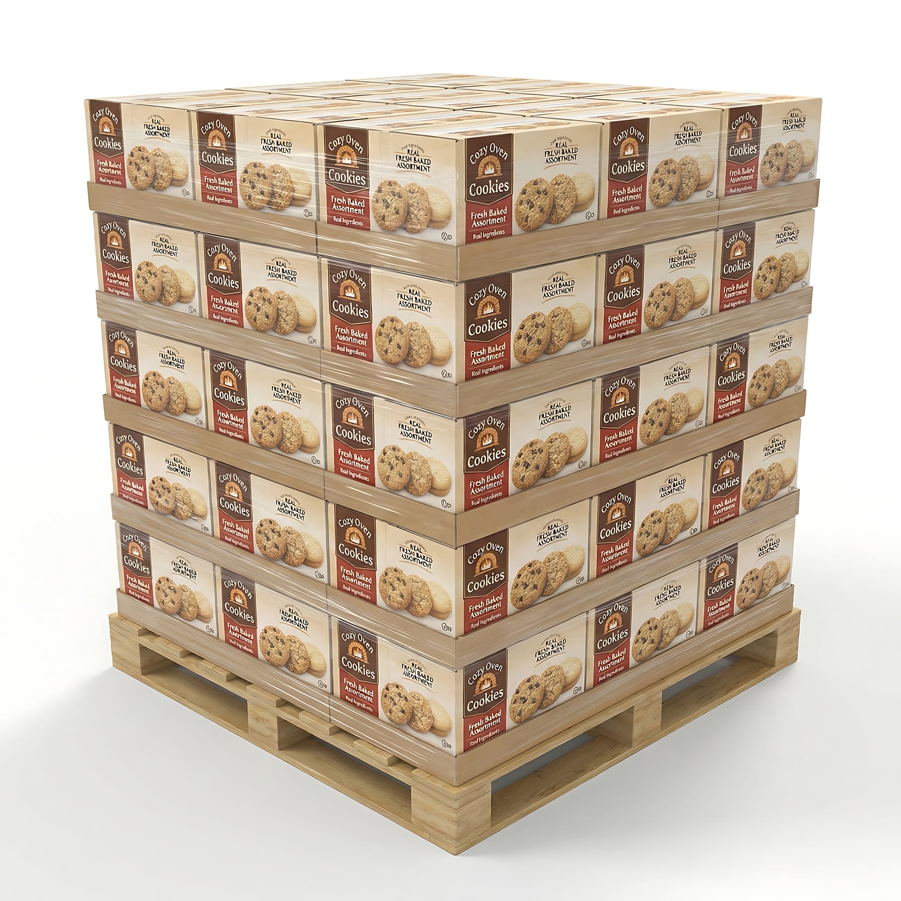 These renderings are designed to clearly communicate product layout, packaging, branding, and pallet configuration before production — helping teams secure approvals faster and reduce costly revisions.